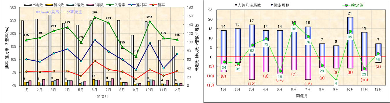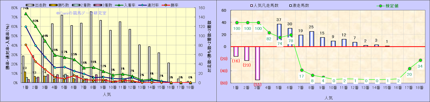 人気凡走馬:1-3番人気で着外、激走馬:5-18番人気で入着 |