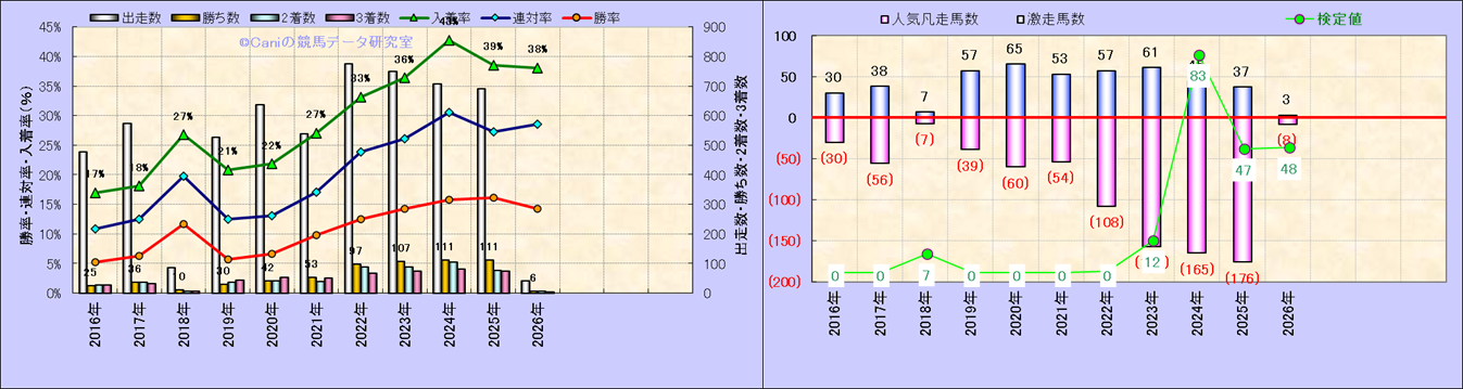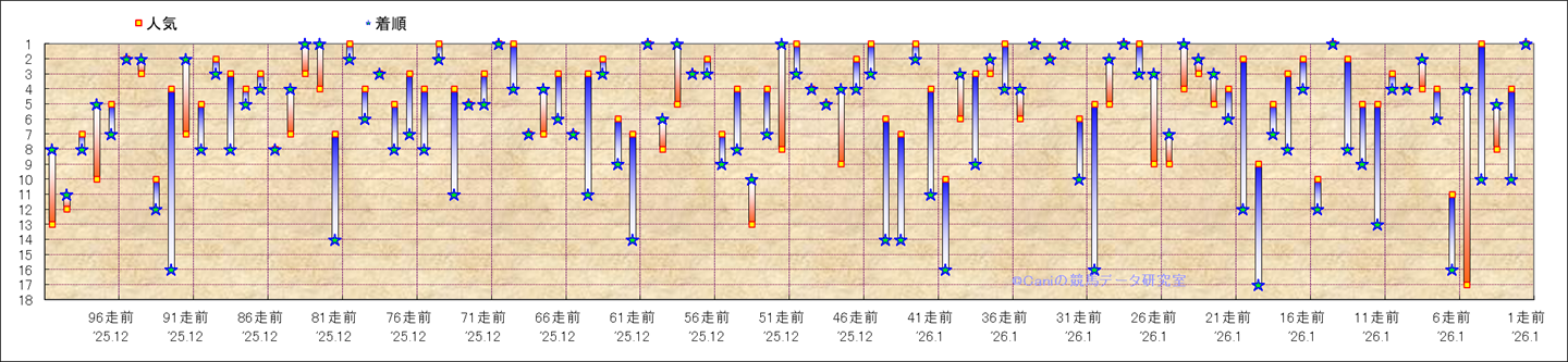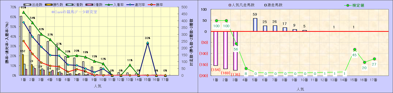 人気凡走馬:1-3番人気で着外、激走馬:5-18番人気で入着 |
