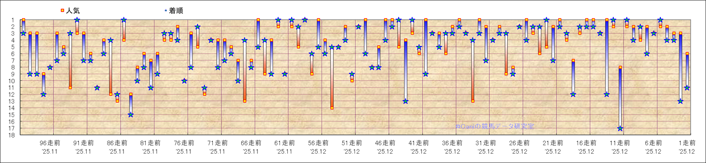 近100騎乗の人気と着順 |