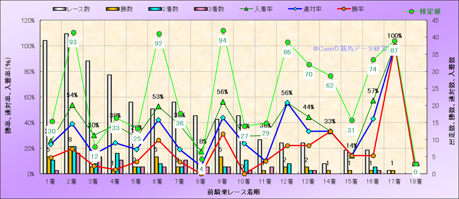 前騎乗レース着順別成績(近300騎乗) |