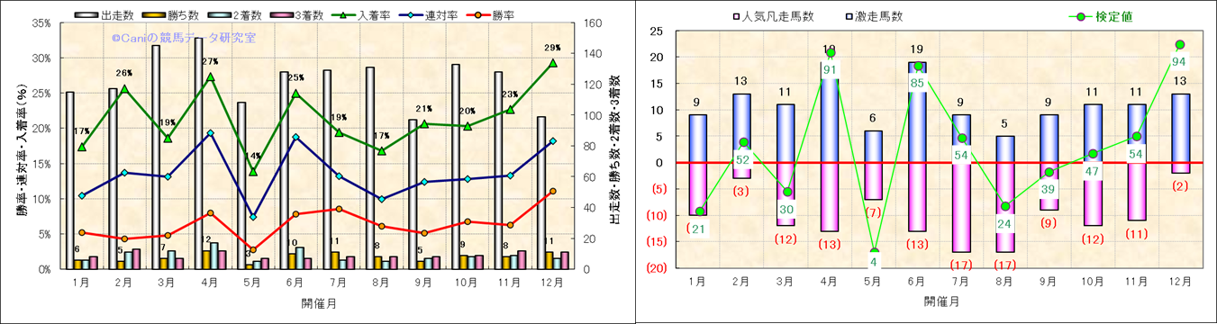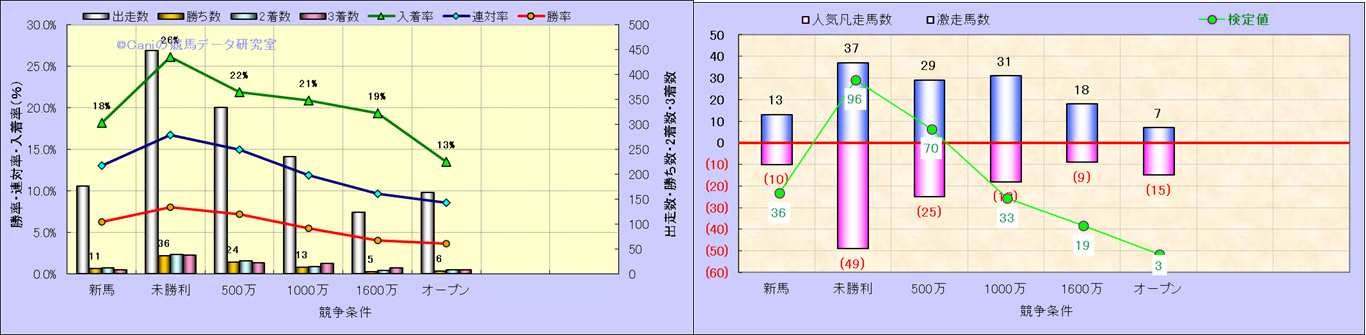 人気凡走馬:1-3番人気で着外、激走馬:5-18番人気で入着 |