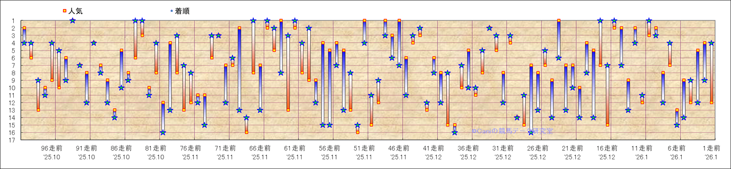 近100騎乗の人気と着順 |