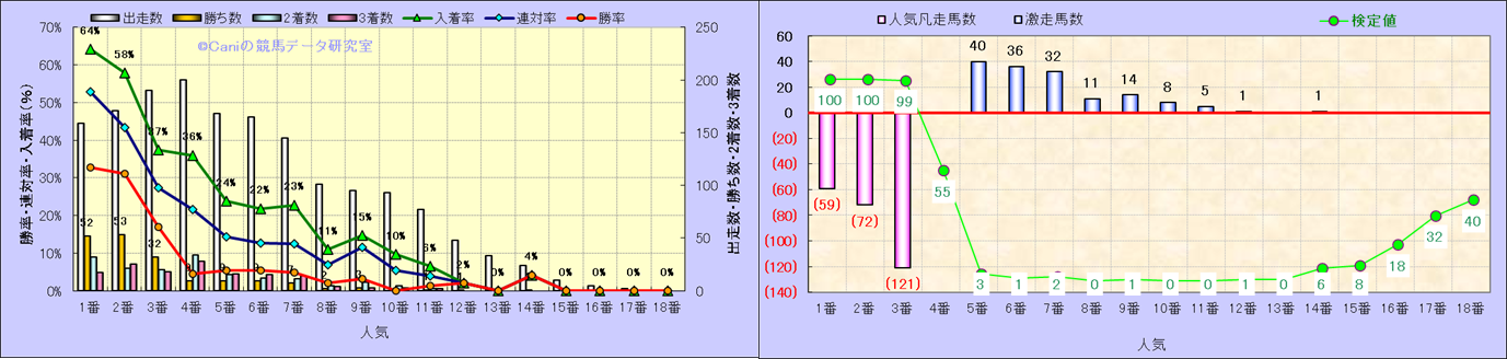 人気凡走馬:1-3番人気で着外、激走馬:5-18番人気で入着 |