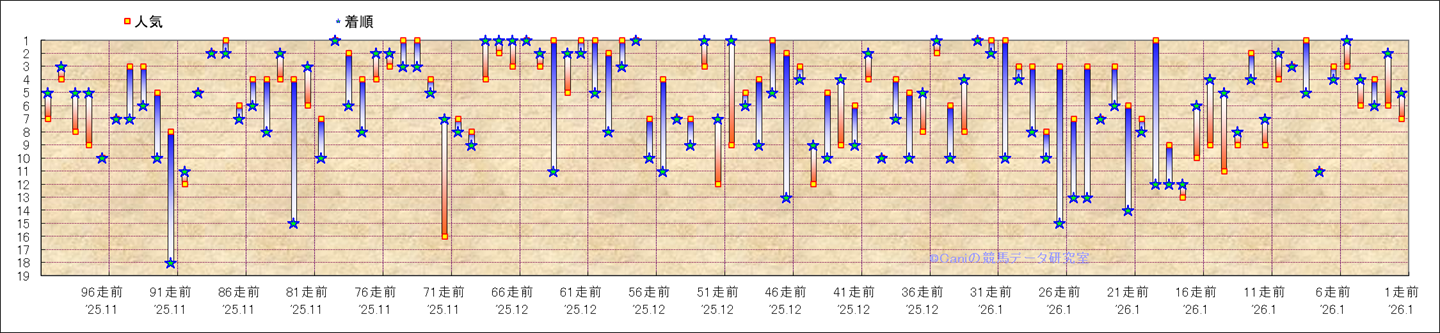 近100騎乗の人気と着順 |