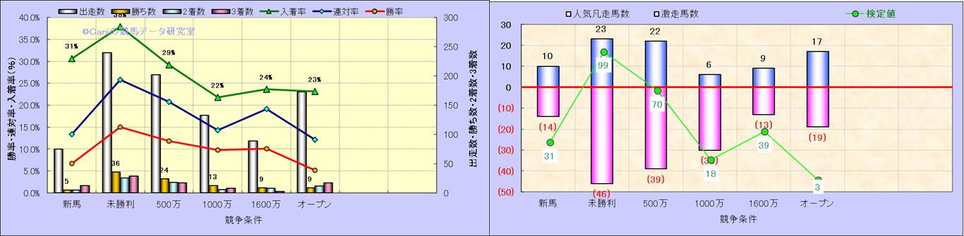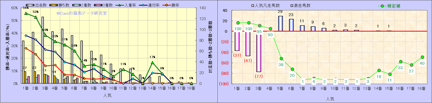 人気凡走馬:1-3番人気で着外、激走馬:5-18番人気で入着 |