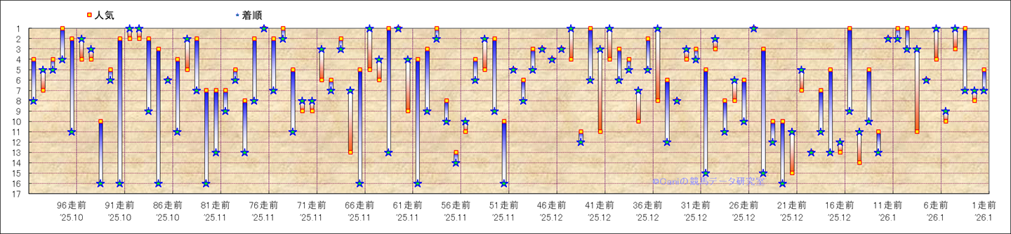 近100騎乗の人気と着順 |