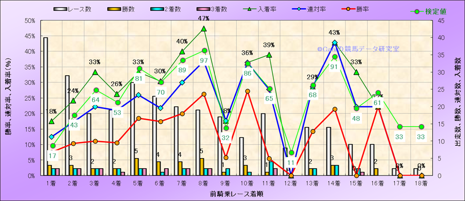 前騎乗レース着順別成績(近300騎乗) |