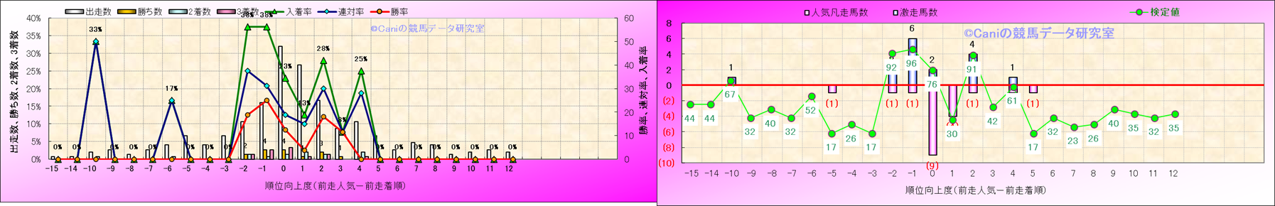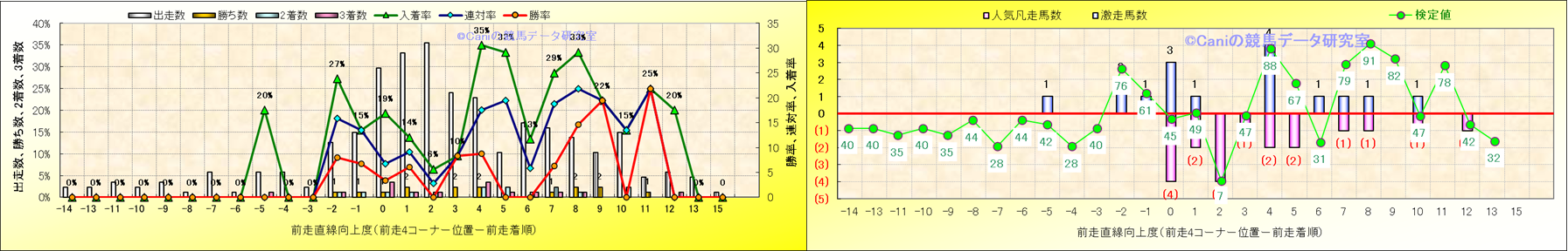 前走直線向上度(前走4コーナー位置-前走着順)別解析 |