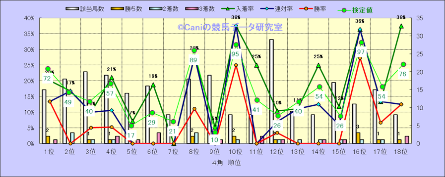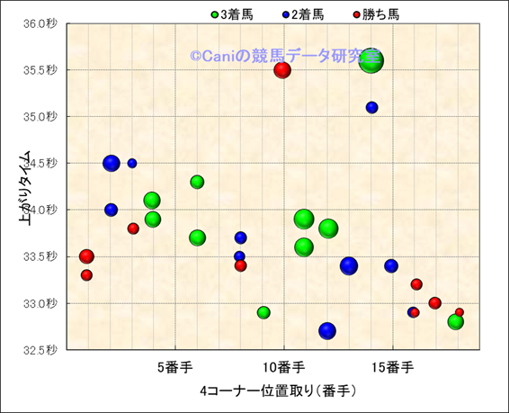4コーナー順位-上がりタイム散布図(良馬場限定) |