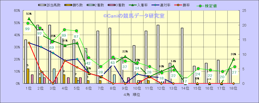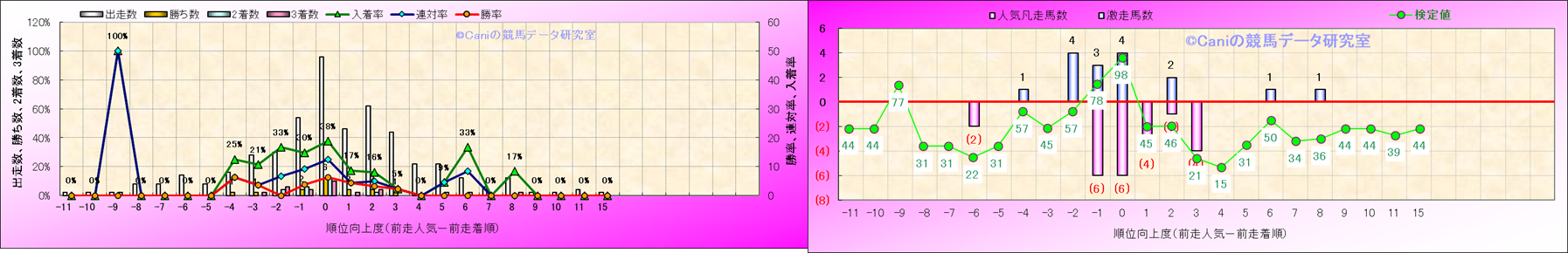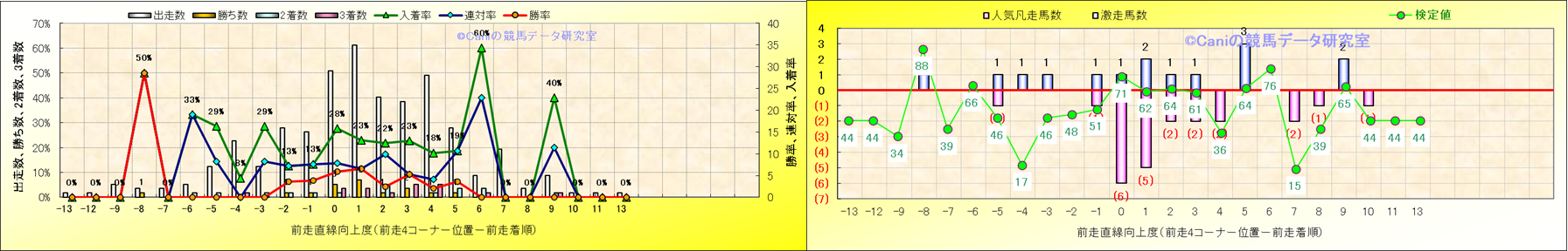 前走直線向上度(前走4コーナー位置-前走着順)別解析 |