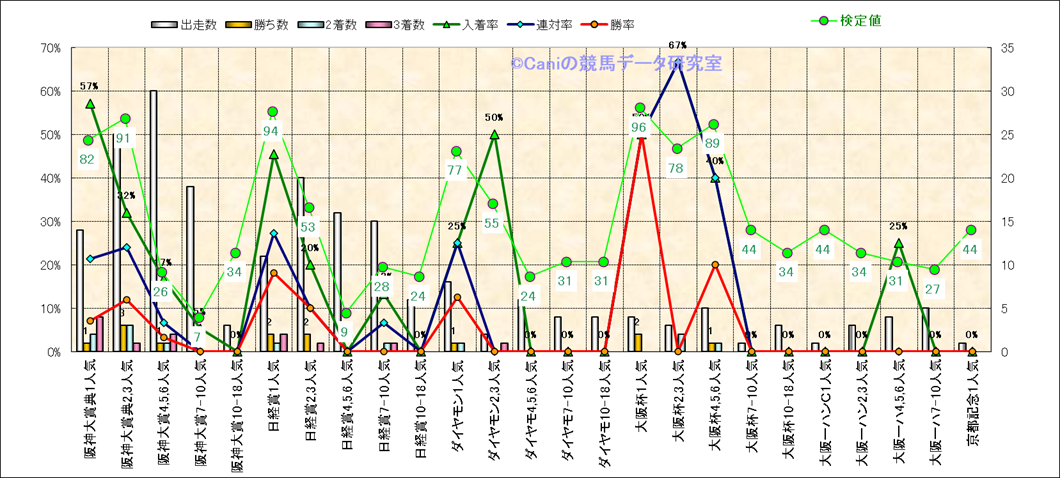 人気凡走馬:1-3番人気で着外、激走馬:5-18番人気で入着 |
