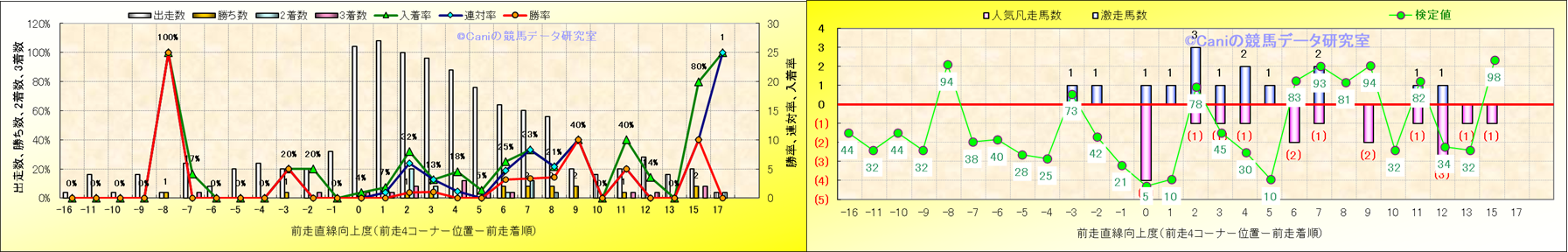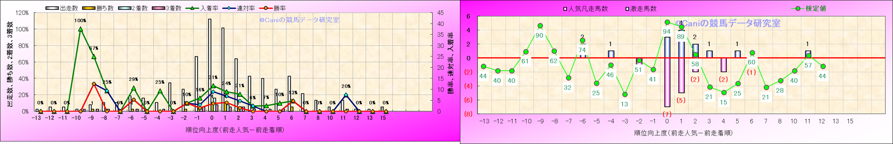 前走直線向上度(前走4コーナー位置-前走着順)別解析 |
