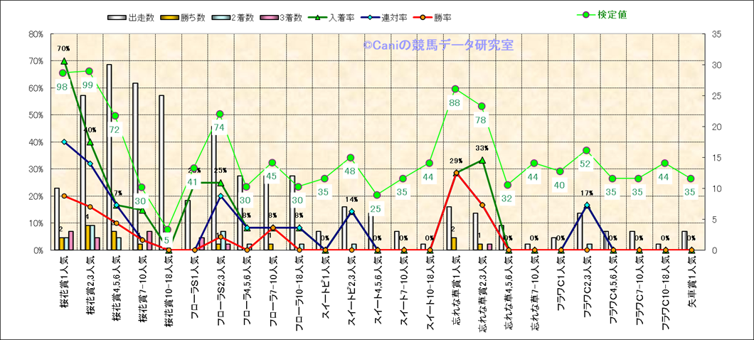 人気凡走馬:1-3番人気で着外、激走馬:5-18番人気で入着 |