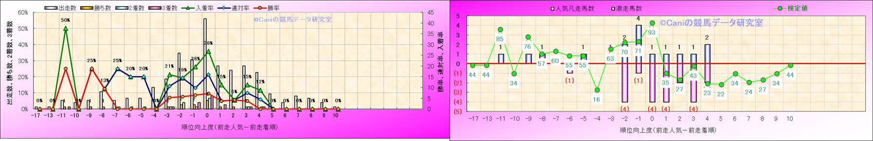 前走直線向上度(前走4コーナー位置-前走着順)別解析 |