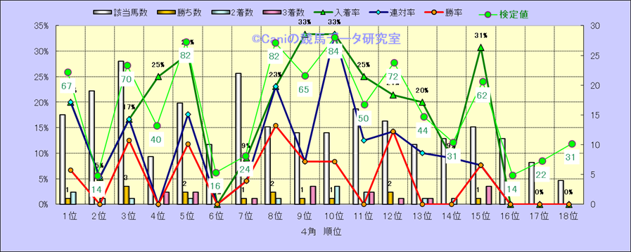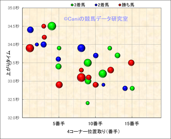 4コーナー順位-上がりタイム散布図(良馬場限定) |