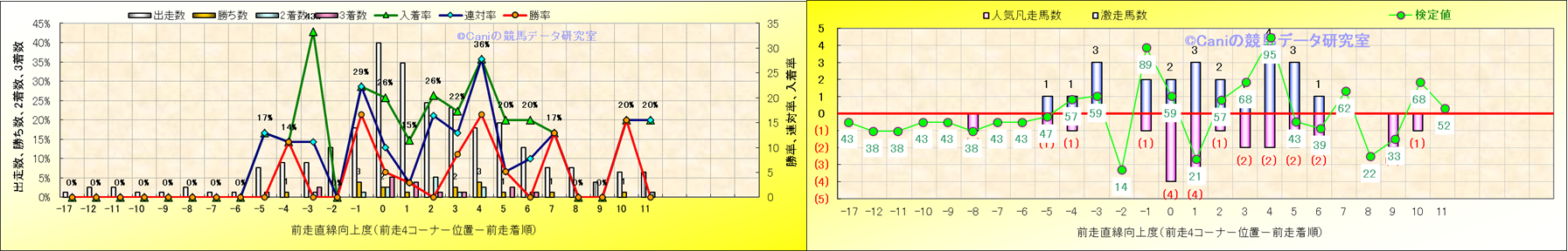 前走直線向上度(前走4コーナー位置-前走着順)別解析 |