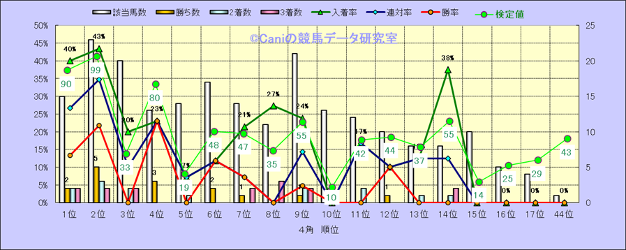 4コーナー順位-上がりタイム散布図(良馬場限定) |