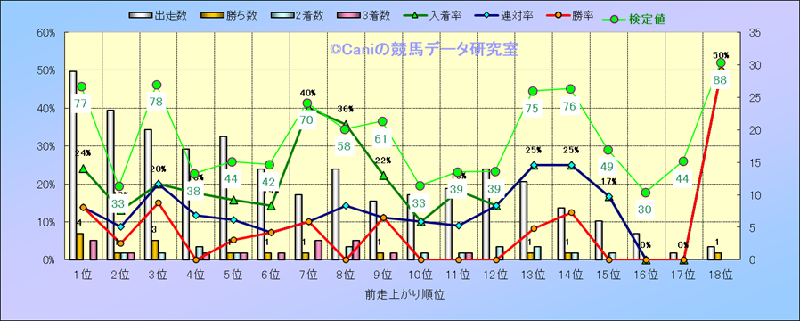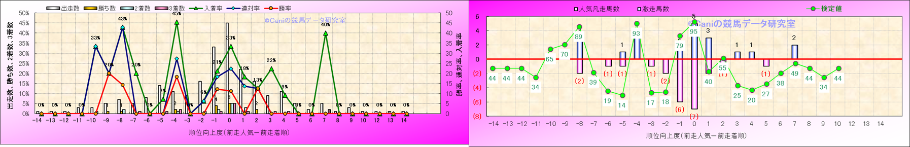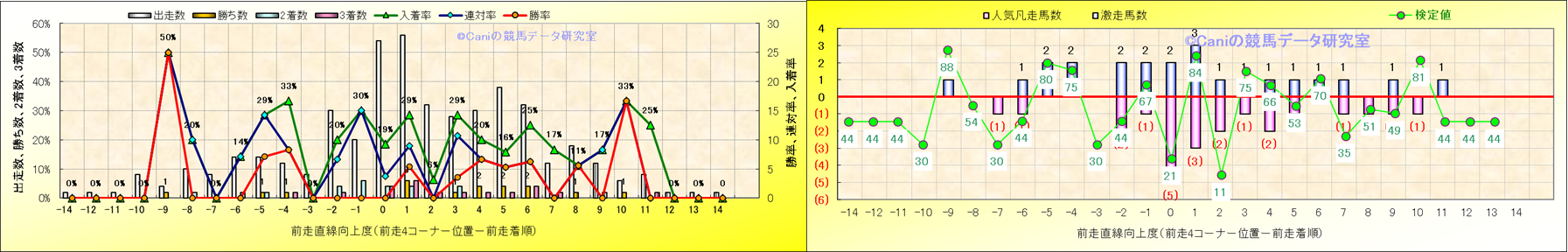 前走直線向上度(前走4コーナー位置-前走着順)別解析 |