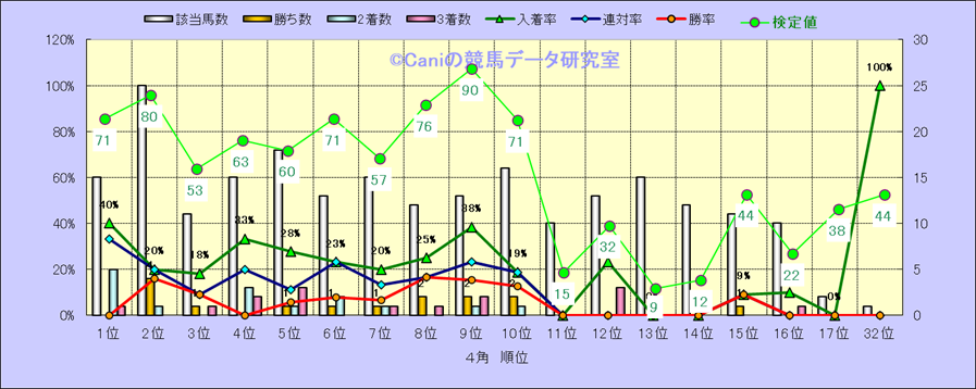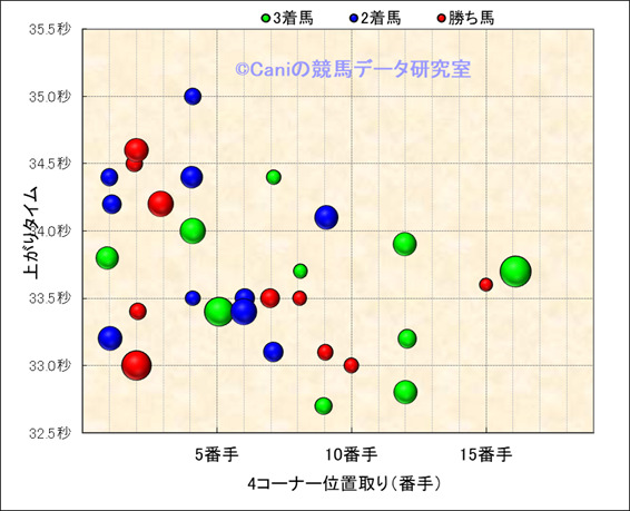 4コーナー順位-上がりタイム散布図(良馬場限定) |