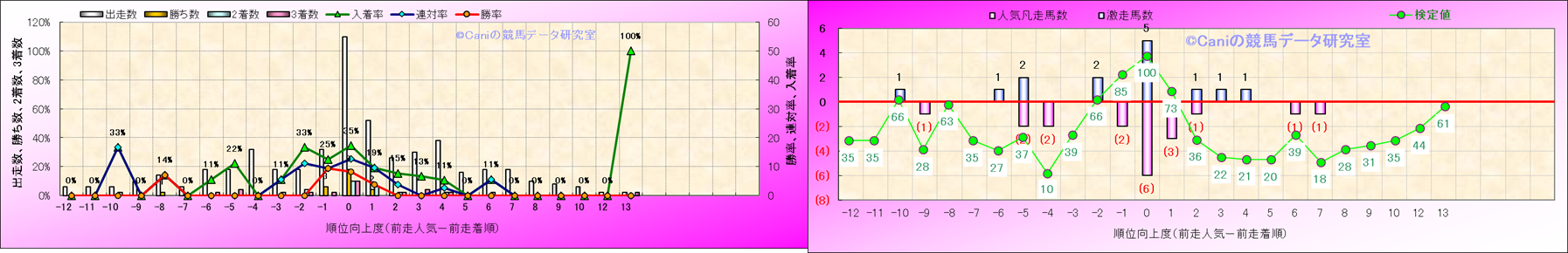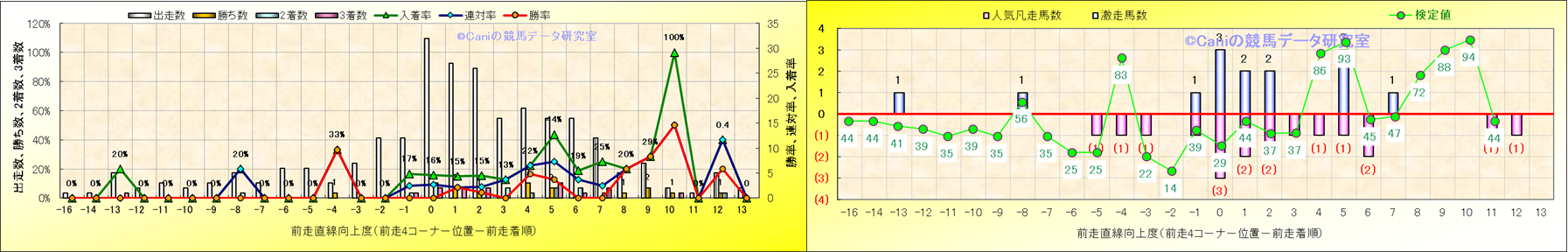 前走直線向上度(前走4コーナー位置-前走着順)別解析 |