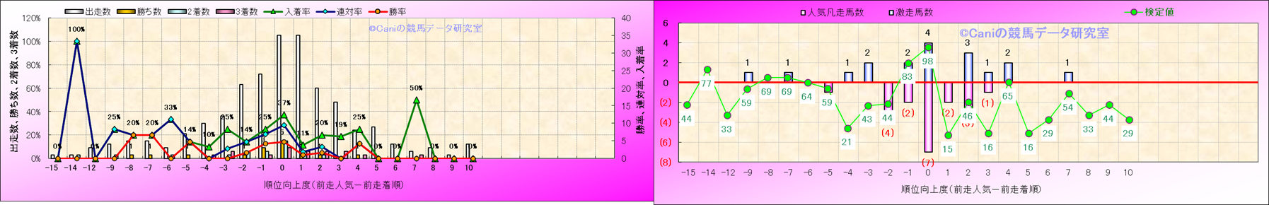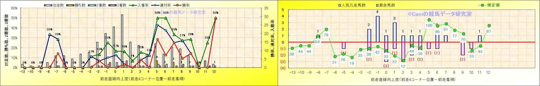 前走直線向上度(前走4コーナー位置-前走着順)別解析 |