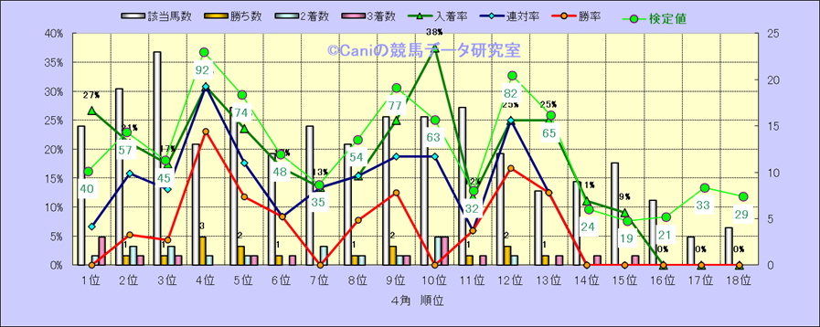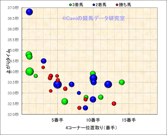 4コーナー順位-上がりタイム散布図(良馬場限定) |