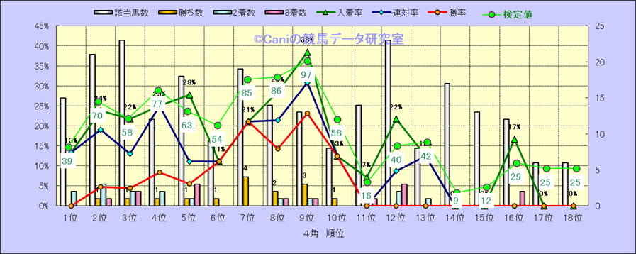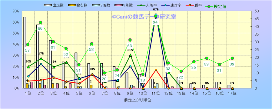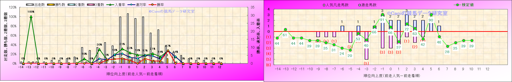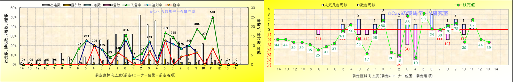 前走直線向上度(前走4コーナー位置-前走着順)別解析 |