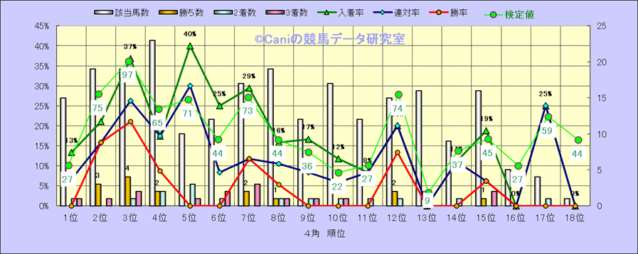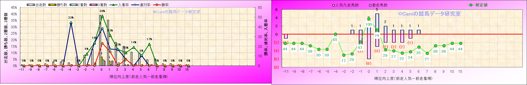 前走直線向上度(前走4コーナー位置-前走着順)別解析 |