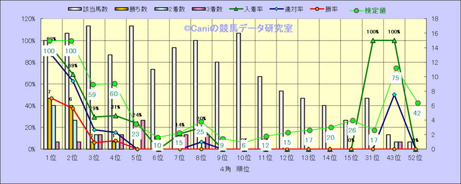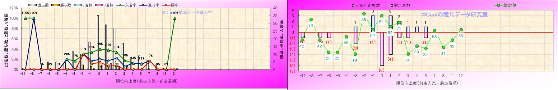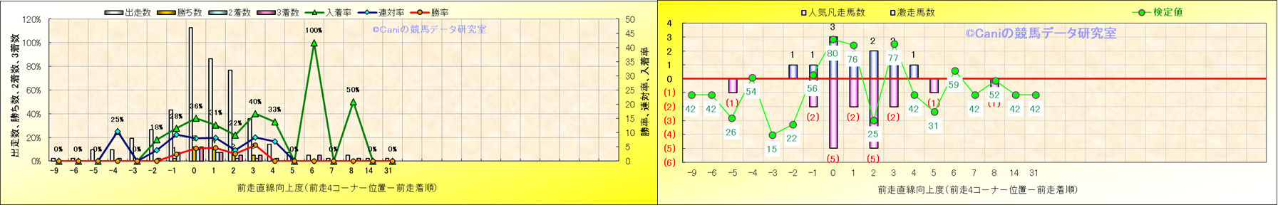前走直線向上度(前走4コーナー位置-前走着順)別解析 |