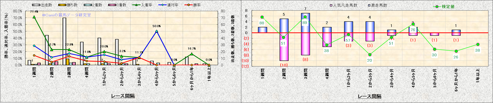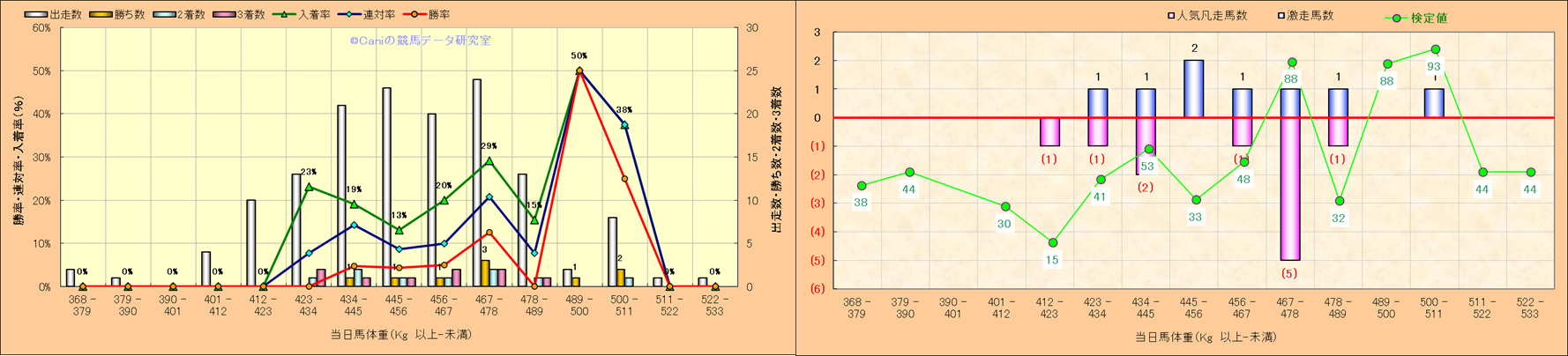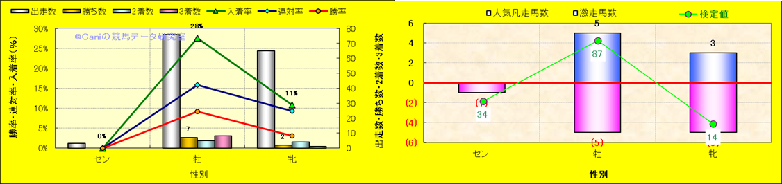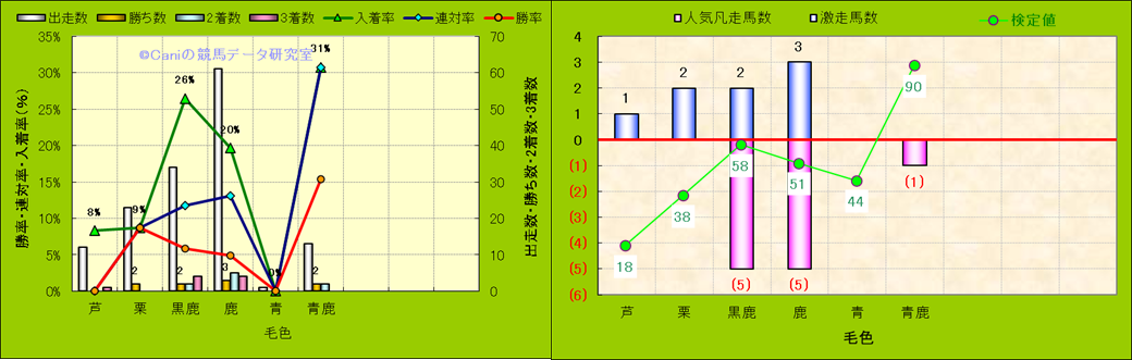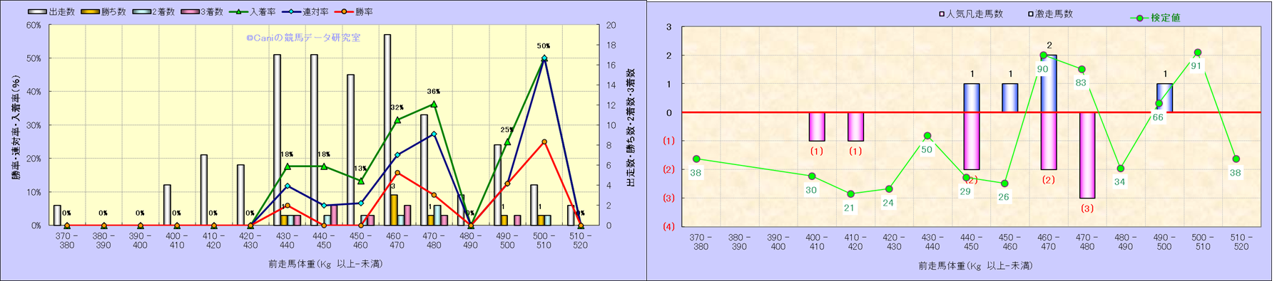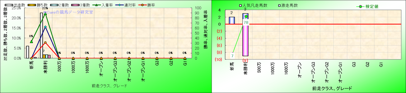 人気凡走馬:1-3番人気で着外、激走馬:5-18番人気で入着 ・検定値 |