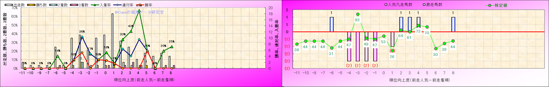 前走直線向上度(前走4コーナー位置-前走着順)別解析 |