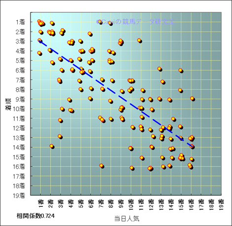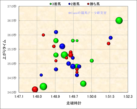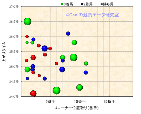 4コーナー順位-上がりタイム散布図(良馬場限定) |