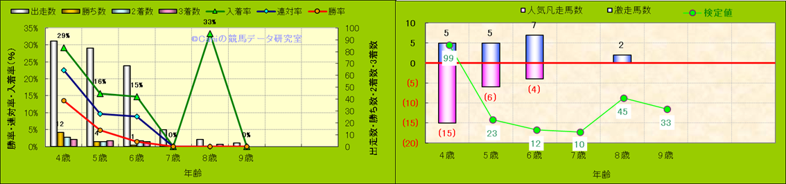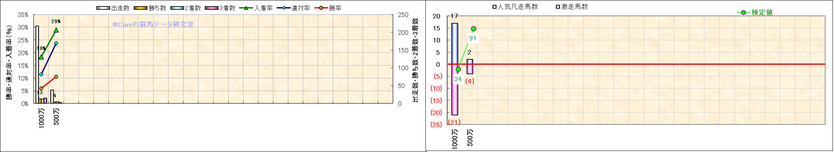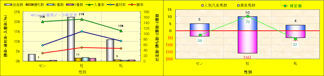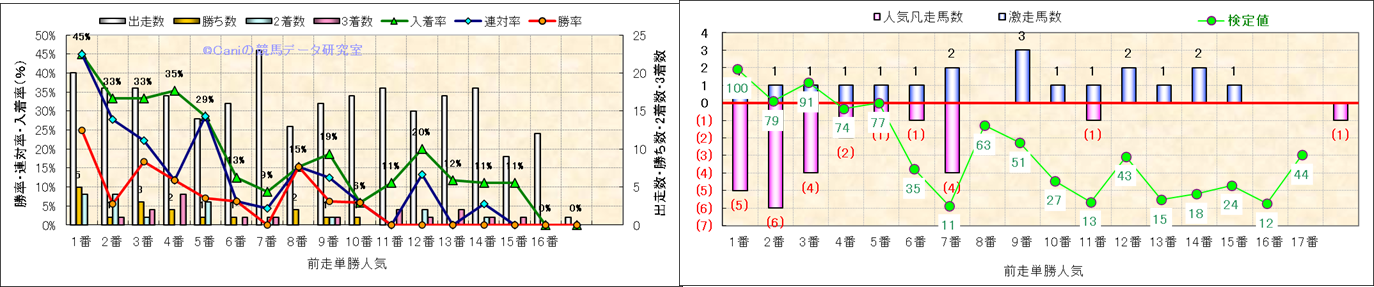 人気凡走馬:1-3番人気で着外、激走馬:5-18番人気で入着 ・検定値 |