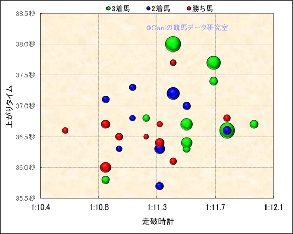 走破時計-上がりタイム散布図(良馬場限定) |
