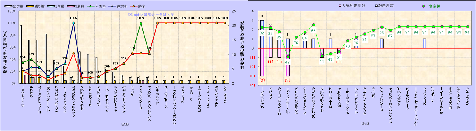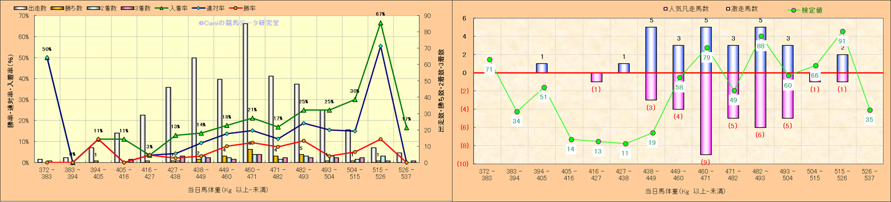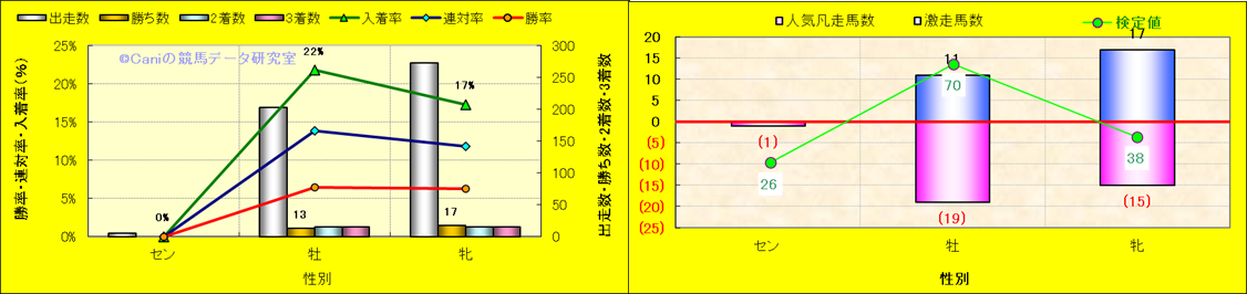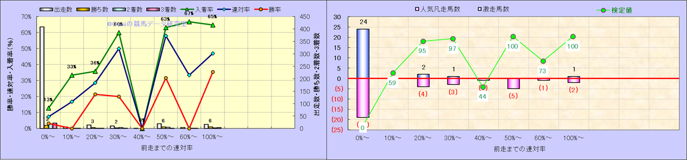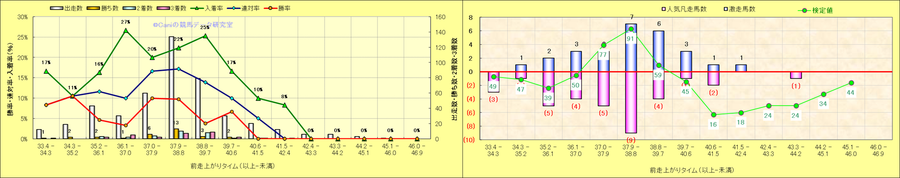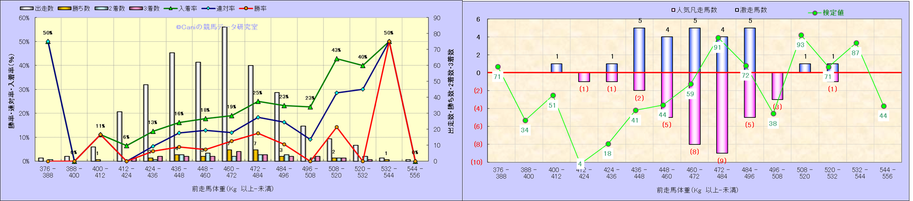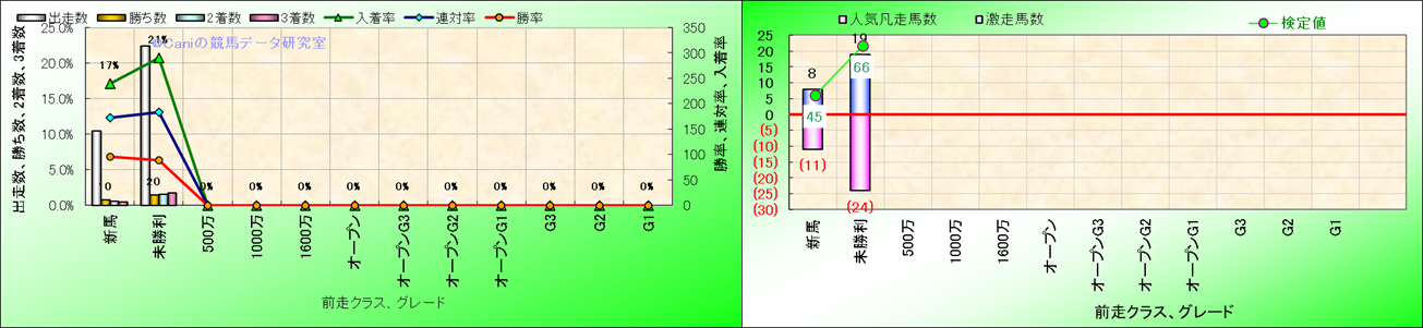 人気凡走馬:1-3番人気で着外、激走馬:5-18番人気で入着 ・検定値 |