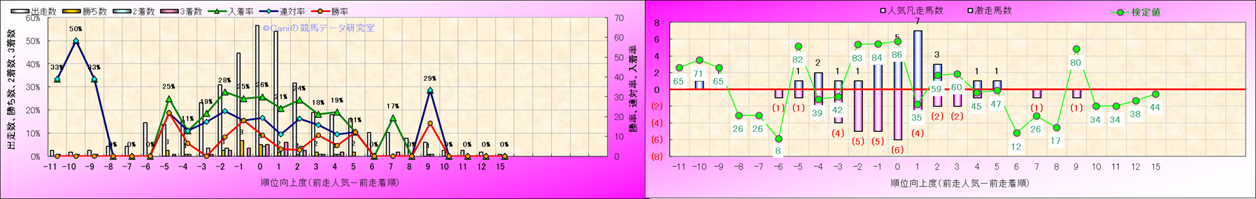 前走直線向上度(前走4コーナー位置-前走着順)別解析 |