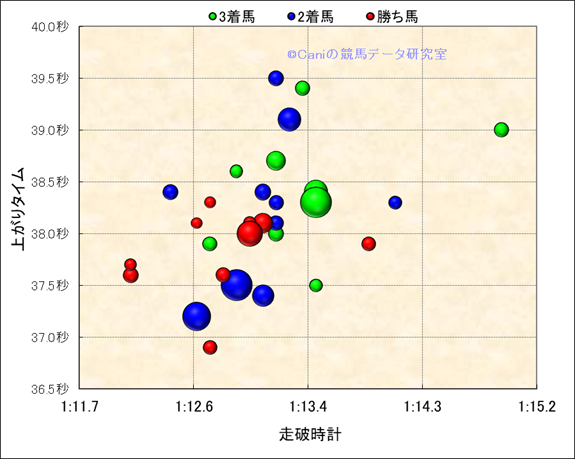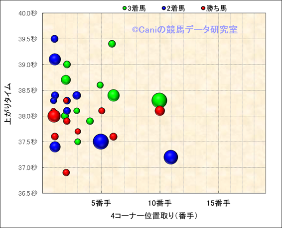 4コーナー順位-上がりタイム散布図(良馬場限定) |
