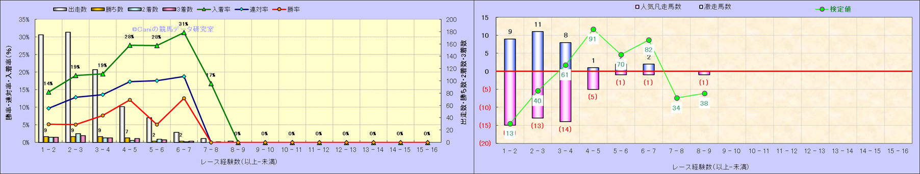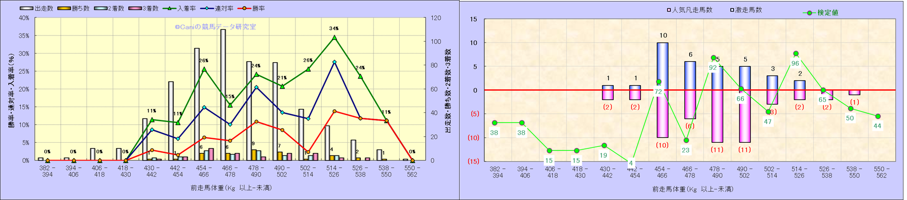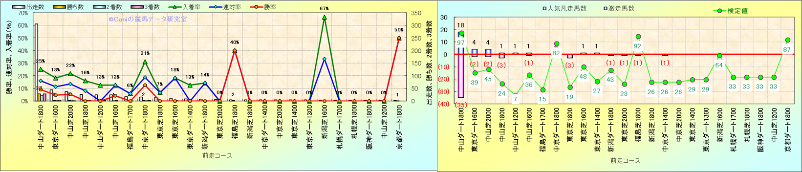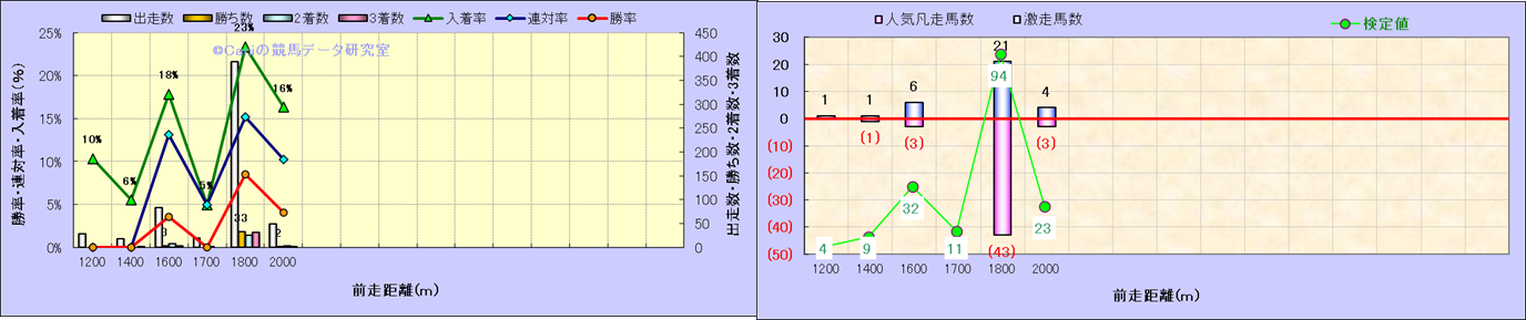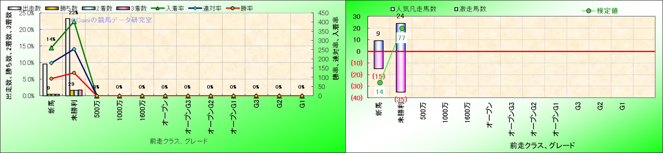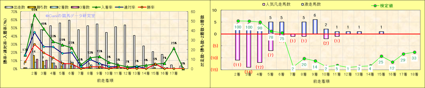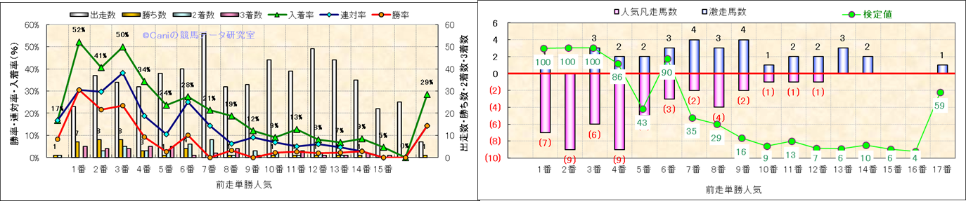 人気凡走馬:1-3番人気で着外、激走馬:5-18番人気で入着 ・検定値 |