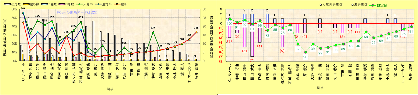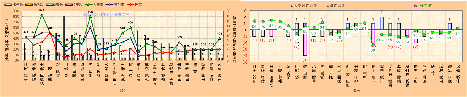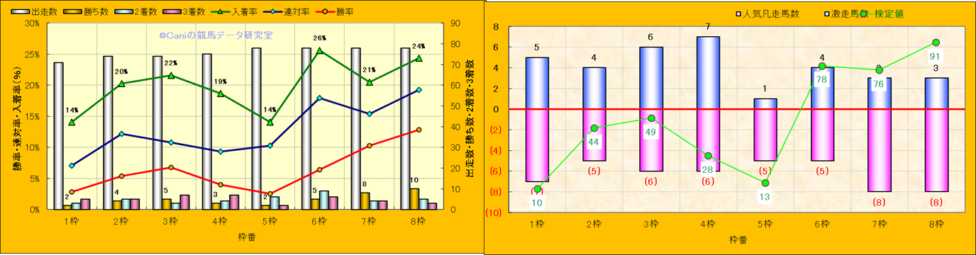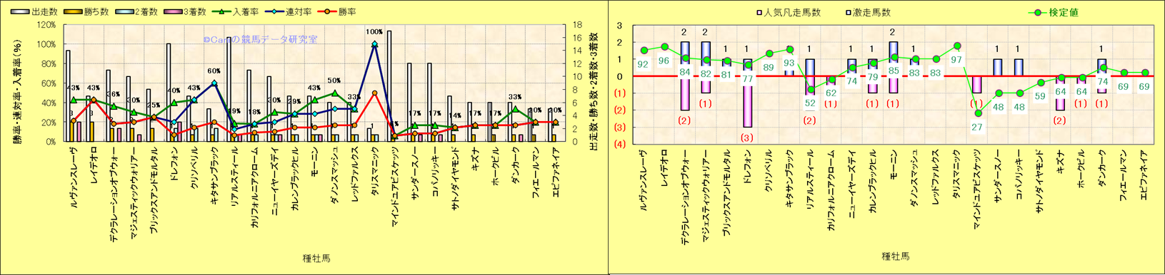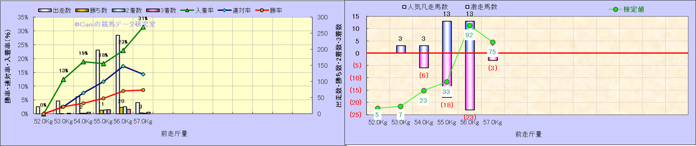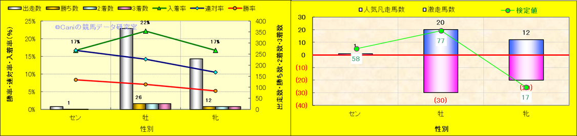 人気凡走馬:1-3番人気で着外、激走馬:5-18番人気で入着 ・検定値 |