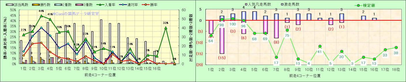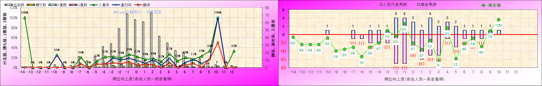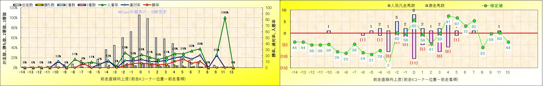 前走直線向上度(前走4コーナー位置-前走着順)別解析 |