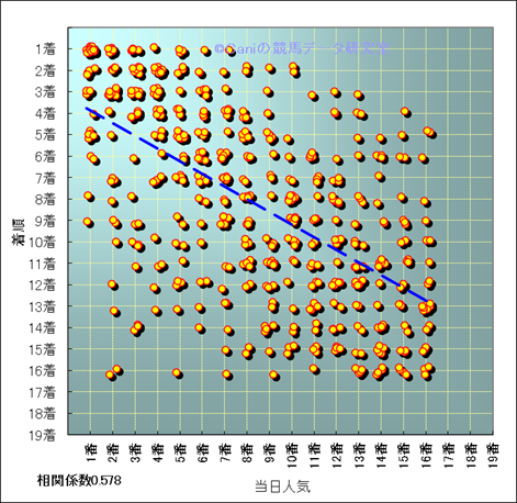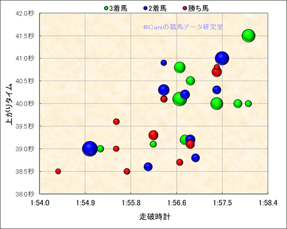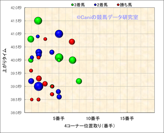 4コーナー順位-上がりタイム散布図(良馬場限定) |