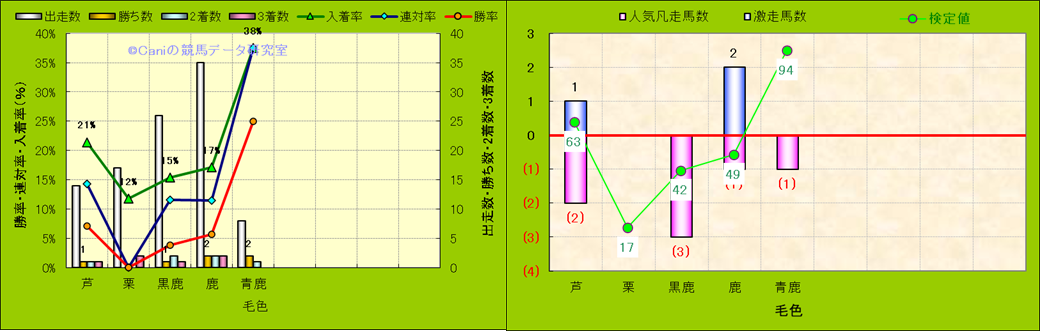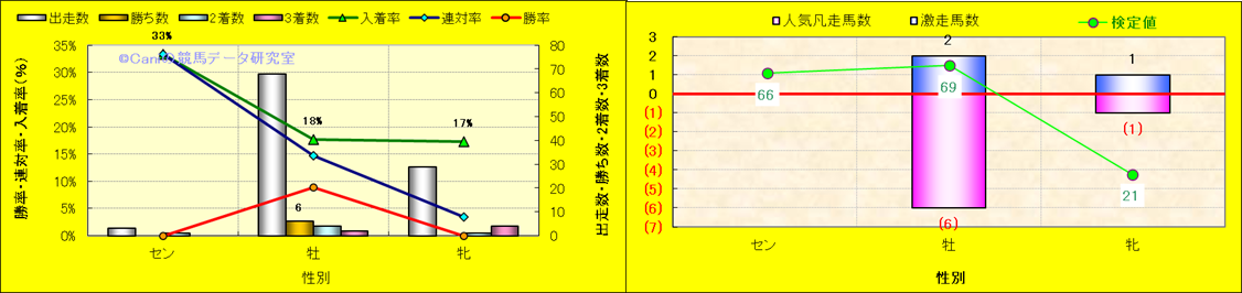 人気凡走馬:1-3番人気で着外、激走馬:5-18番人気で入着 ・検定値 |