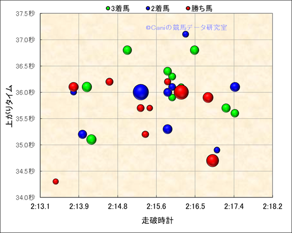 走破時計-上がりタイム散布図(良馬場限定) |