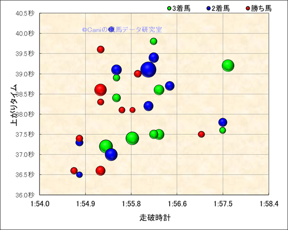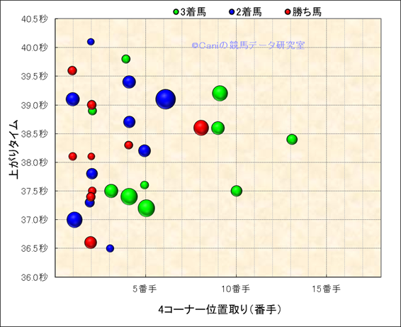 4コーナー順位-上がりタイム散布図(良馬場限定) |