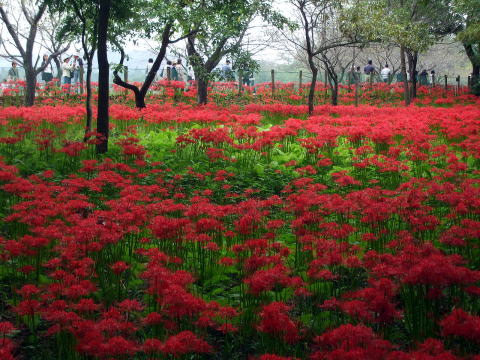 | 9月21日 【巾着田】 かみさんと行ってきました。巾着田。 原宿か軽井沢のような人人人・・・。 彼岸花は赤が、白のような、青のような、真っ赤というほど鮮やかではなく、 オレンジというほど軽くはない。 なかなか味のある風景でした。 ![]() 巾着田 |