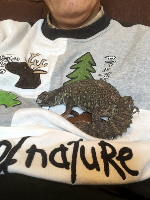 | 2018年12月3日 【暖か】 陽は出ていないのだが、かなり暖かい日。 トカゲがお腹の上に載せて、我慢できるようになってきた。 まだまだ、先は長いが、進展はある。 ![]() |