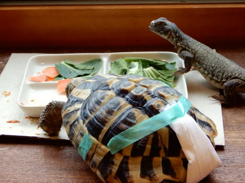 | 2019年2月11日 【また雪】 今日も雪。寒い寒い。 トカゲ(ペッパー)は、発情期なのか動き回っていた。 カメ(ダビ)は沐浴の後、ストーブの前で気持ちよさそうにしていた。 ![]() |