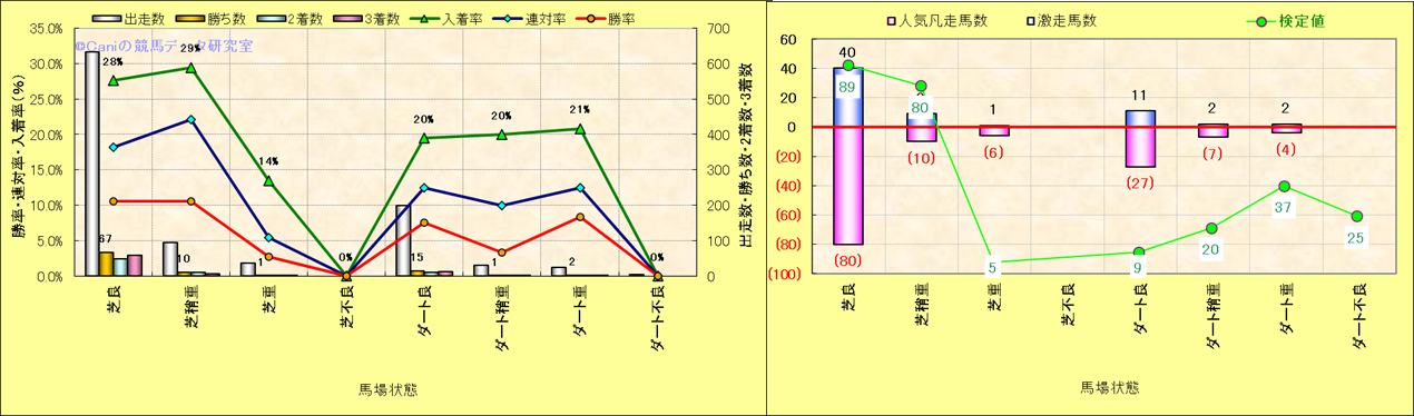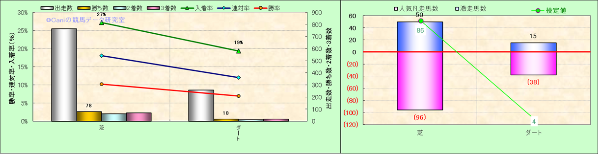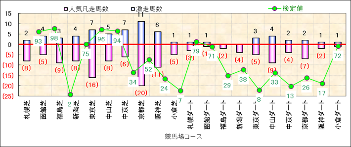 人気凡走馬:1-3番人気で着外、激走馬:5-18番人気で入着 |
