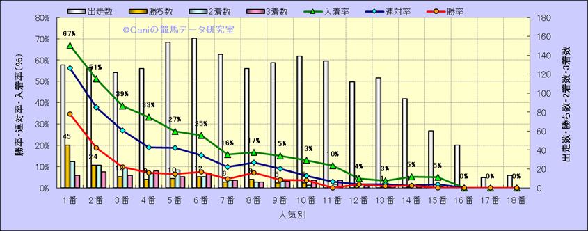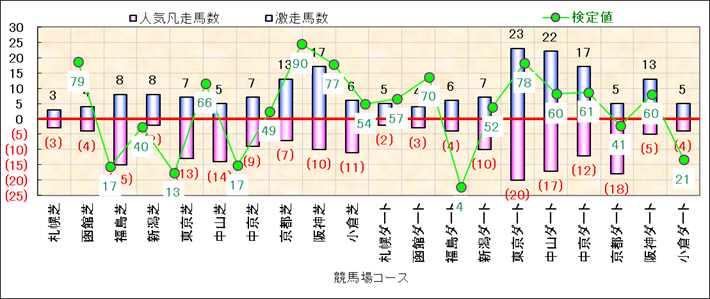 人気凡走馬:1-3番人気で着外、激走馬:5-18番人気で入着 |