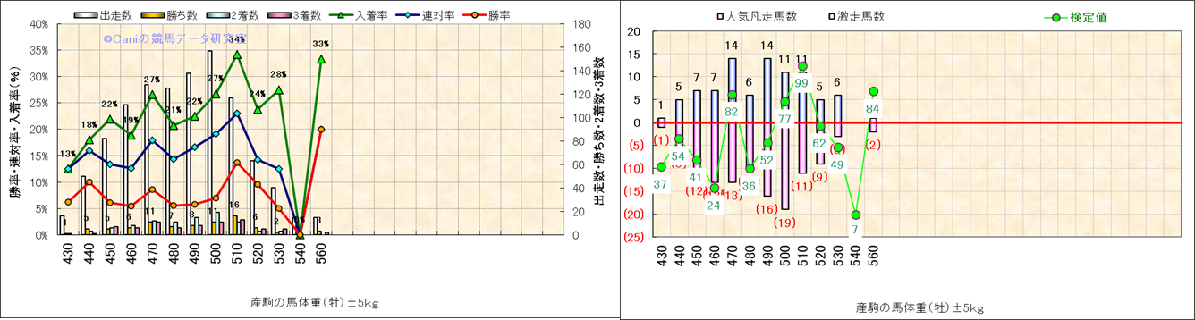 牡産駒の体重別成績-近3年- |